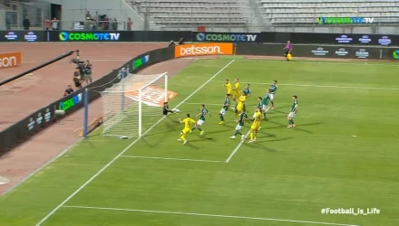 Η ομάδα του Άκη Μάντζιου έχασε μεγάλη ευκαιρία για να ανοίξει το σκορ, όταν μετά από εκτέλεση φάουλ του Σουλεϊμάνοφ από τα αριστερά, ο Φαμπιάνο έπιασε την κεφαλιά και ο Λοντίγκιν απέκρουσε εντυπωσιακά, αποσοβώντας τον κίνδυνο για την ομάδα του στο 25΄.