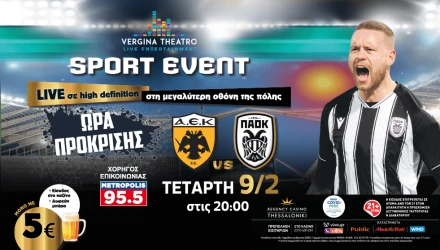 Το Metropolis 95.5 σε προσκαλεί την Τετάρτη 9 Φεβρουαρίου στις 20.00, στο θέατρο Vergina του Regency Casinο Thessaloniki, για να παρακολουθήσεις τον αγώνα ΑΕΚ – ΠΑΟΚ σε ένα μοναδικό Live event με όλα τα υγειονομικά μέτρα προστασίας.