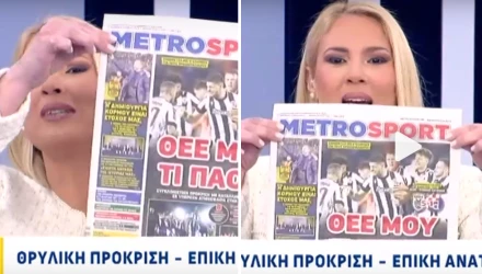 Έτσι στο πρωινό του Action24, η δημοσιογράφος Κοτροκόη έκανε καζούρα τον «πράσινο» Υποφάντη κρατώντας στα χέρια της την εφημερίδα Metrosport και δείχνοντας με εμφατικό τρόπο το πρωτοσέλιδο της που ανέφερε χαρακτηριστικά, «Θεέ μου τι ΠΑΟΚ».