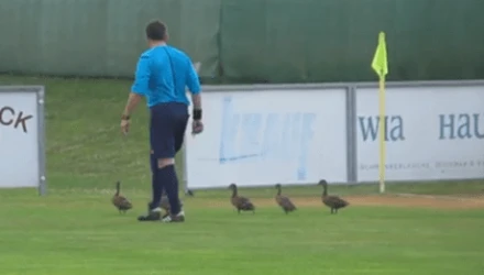 Μερικές... πάπιες ήταν η αιτία να διακοπεί η φιλική αναμέτρηση της Ζενίτ με την Λουντογκόρετς στην Αυστρία. Δείτε σε VIDEO τον διαιτητή να προσπαθεί να τις απομακρύνει από τον αγωνιστικό χώρο. Λίγες ώρες μετά, η Ζενίτ ανέβασε στον λογαριασμό της στο Youtube VIDEO με τα highlights της αναμέτρησης διάρκειας 41 δευτερολέπτων.