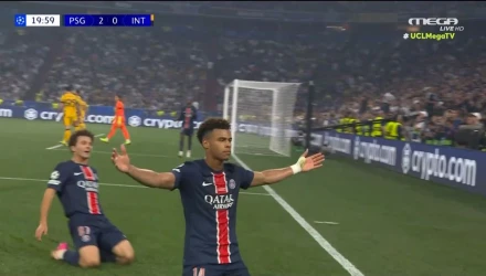 Η Παρί Σεν Ζερμέν βρίσκει και δεύτερο γκολ απέναντι στην Ίντερ, με τον Ντεμπελέ να τροφοδοτεί τον Ντουέ, ο οποίος έκανε το σουτ, η μπάλα κόντραρε κα κατέληξε στα δίχτυα του Σόμερ.
