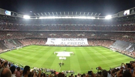 Η φανέλα με το 9 απλώθηκε στο κέντρο, μπροστά του παρατεταγμένα όλα τα κύπελλοπου κατέκτησε με τη Ρεάλ, στην κερκίδα ένα τεράστιο πανό με το μήνυμα «Ευχαριστούμε Αλφρέδο» και μια τετραμελής ορχήστρα να παίζει το εμβατήριο. Ήταν ένα τρομερά συγκινητικό αντίο στον θρυλικό Ντι Στέφανο.