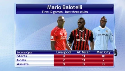 Το ξεκίνημα του Μπαλοτέλι στην Λίβερπουλ δεν είναι και το καλύτερο, καθώς στις 12 πρώτες του συμμετοχές έχει πετύχει μόλις δυο τέρματα και δεν θυμίζει σε τίποτα τον Μπαλοτέλι της Μάντσεστερ Σίτι και της Μίλαν.