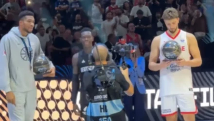 Κατά την ανάδειξη της κορυφαίας 5αδας, Γιάννης Αντετοκούνμπο και Αλπερέν Σενγκούν δεν έδωσαν τα χέρια, με την κάμερα να αποτυπώνει το στιγμιότυπο.