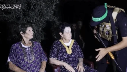 Η Χαμάς έδωσε στη δημοσιότητα τη στιγμή της απελευθέρωσης των δύο γυναικών με τους ενόπλους της τρομοκρατικής οργάνωσης να τις παραδίδουν, έχοντας καλυμμένα τα πρόσωπά τους.