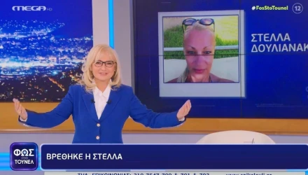 Η εκπομπή «Φως στο Τούνελ» του Mega κατάφερε να βρει μία 43χρονη κοπέλα, τα ίχνη της οποίας είχαν χαθεί από τον περασμένο Σεπτέμβριο.