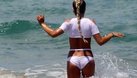 Έβαλε το νέο της μαγιό και πάντα χαμογελαστή έκανε τις βουτιές της προκαλώντας εγγκεφαλικά στους λουόμενους που τη θαύμαζαν...