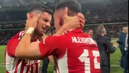 Ο επίσημος λογαριασμός του UEFA Conference League ανέβασε ένα συγκλονιστικό βίντεο με τον Σωτήρη Αλεξανδρόπουλο να πανηγυρίζει αγκαλιά με τον Γιώργο Μασούρα και τον διεθνή Έλληνα μέσο να φωνάζει στον επιθετικό των Πειραιωτών, «το πήραμε ρε τρελέ».