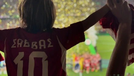 Στο κατάμεστο γήπεδο ήταν και η Δούκισσα Νομικού μαζί με τον σύζυγό της Δημήτρη Θεοδωρίδη αλλά και τον γιο τους Σάββα, ο οποίος είναι εγγονός του άλλοτε τερματοφύλακα και αντιπροέδρου της ΠΑΕ.