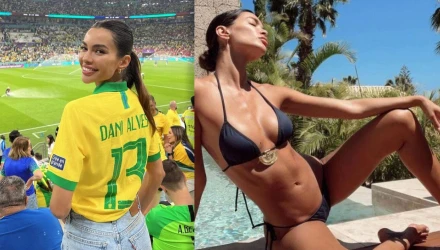 Μαζί με τον Ντάνι Άλβες ταξίδεψε στο Κατάρ και η σύντροφός του. Ο λόγος για την καυτή Τζοάνα Σανθ, η οποία έβαλε...φωτιές στις εξέδρες του γηπέδου.
