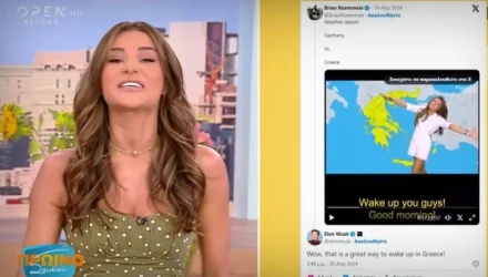 Ο γνωστός επιχειρηματίας βλέποντας την παρουσιάστρια του OPEN σε ένα βίντεο από το παρελθόν που έλεγε τον καιρό στην εκπομπή «Happy Day», σχολίασε: «Αυτός είναι ένας πολύ όμορφος τρόπος να ξυπνάς στην Ελλάδα».