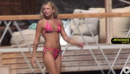 Η κάμερα του Mykonos Live TV την έπιασε να κάνει μπάνιο στη θάλασσα μαζί με μία φίλη της, φορώντας ένα ροζ μπικίνι που «τρέλανε» τους παρευρισκόμενους.