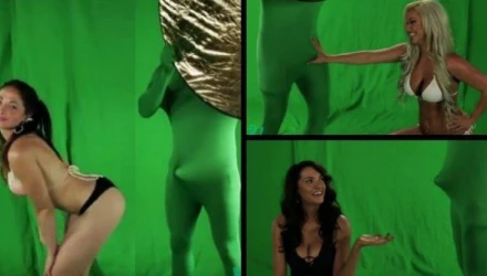 Ένας φωτιστής φόρεσε πράσινη στολή, ώστε να ξεχωρίζει από το background, όμως αυτό που τράβηξε την προσοχή των μοντέλων ήταν πως ο συγκεκριμένος άνδρας φάνηκε αρκετά «κεφάτος», μη μπορώντας να κρύψει τη… χαρά του.