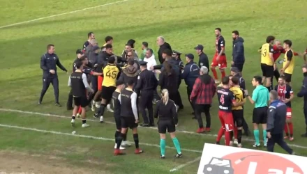 Το επεισόδιο έληξε με την παρέμβαση των ψυχραιμοτέρων και με τον διαιτητή να υποδεικνύει δύο κόκκινες κάρτες, από μία για κάθε ομάδα.