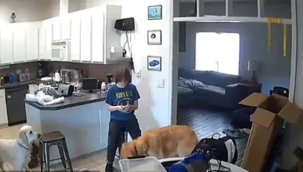 Αμέσως μετά, η 14χρονη επέστρεψε στην κουζίνα, όπου εικονίζεται να παίζει με το κινητό της, ενώ τα δύο σκυλιά της παρακολουθούσαν.