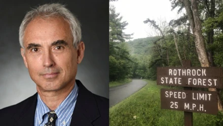 Συγκεκριμένα, πρόκειται για τον 64χρονο Θέμη Ματσούκα που φέρεται να καταγράφηκε από κάμερες ασφαλείας ωκατά τη διάρκεια της πράξης με το σκυλί ράτσας κόλεϊ δίπλα στις τουαλέτες του Rothrock State Forest της Πενσυλβάνια, φορώντας μόνο μια μάσκα, τις κάλτσες και τα παπούτσια του.