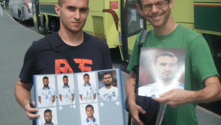 Μια ευχάριστη έκπληξη περίμενε την αποστολή του ΠΑΟΚ όταν έκανε την εμφάνιση της στο αεροδρόμιο του Λονδίνου χθες το μεσημέρι. Δυο Άγγλοι νεαροί περίμεναν τους ποδοσφαιριστές έξω από το λεωφορείο και είχαν μαζί τους άλμπουμ όπου είχαν τις φωτογραφίες όλων των ποδοσφαιριστών αλλά και του τεχνικού επιτελείου. Μάλιστα είχαν και φωτογραφία του Γκαρσία που όμως δεν ήταν εκεί για να το υπογράψει. Αυτός που «χάζεψε» με τον έναν Άγγλο, τον Ράιαν ήταν ο Τζιόλης. Είχε μαζί του όλα τα αυτοκόλλητα χαρτάκια από την συλλογή Panini που απεικόνιζαν τον Τζιόλη με όλους τους συλλόγους που είχαν αγωνιστεί. Οι δυο νεαροί ευχαριστημένοι από την ανταπόκριση, φωτογραφήθηκαν για την «Μ» δείχνοντας με καμάρι τα άλμπουμ τους