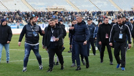 Η ένταση συνεχίστηκε και μετά το σφύριγμα του διαιτητή για το α' ημίχρονο.