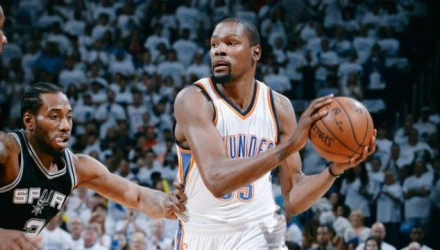 Με έναν Κέβιν Ντουράντ από άλλον πλανήτη, οι Οκλαχόμα Σίτι Θάντερ νίκησαν με 111-97 τους Σαν Αντόνιο Σπερς και ισοφάρισαν σε 2-2 τις νίκες στη σειρά.
