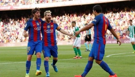 Με τους καλύτερους οιωνούς για την υπεράσπιση του τίτλου της ξεκίνησε τη νέα σεζόν η Μπαρτσελόνα, η οποία χάρη στα «όργια» των Μέσι – Σουάρες ισοπέδωσε 6-2 τη Ρεάλ Μπέτις στο «Καμπ Νόου», στο ντεμπούτο του Γκας Πογιέτ στον πάγκο των Σεβιγιάνων.
