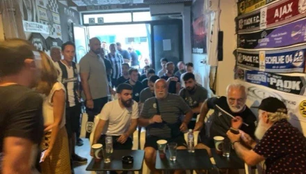 Οταν βρέθηκε στα γραφεία της Λέσχης μαζί με τους γιους του, αποθεώθηκε ενώ του δόθηκε και τιμητική πλακέτα: “Είμαστε πολύ χαρούμενοι που σας έχουμε κοντά μας. Είναι ιδιαίτερη τιμή για εμάς και θέλουμε να δεχθείτε αυτή την πλακέτα ως ελάχιστο δείγμα ευγνωμοσύνης αφού είστε ο άνθρωπος που μας έκανε ξανά περήφανους” ήταν τα λόγια των φίλων του ΠΑΟΚ όταν τίμησαν τον μεγαλομέτοχο. “Μας εξέπληξε η απλότητα του. Ηταν προσιτός, ευγενικός και στο ημίχρονο του αγώνα δεν σταμάτησε να δέχεται ακόμη και τα νεογέννητα για μια φωτογραφία. Θα μας μείνει αξέχαστη αυτή η επίσκεψη. Ο Θεός να τον έχει καλά” ήταν τα σχόλια των παρευρισκομένων.