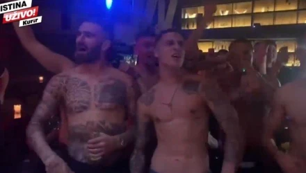 Μάλιστα λίγο πριν ο Βόσνιος σβήσει τα κεράκια της τούρτας με σκαλισμένο το σήμα της Αγίας Σοφίας, ανέβηκε στην σκηνή μαζί με τους παρευρισκόμενους του πάρτι αλλά και με ορισμένους συμπαίκτες του και τραγούδησαν υβριστικό σύνθημα κατά του Ολυμπιακού.