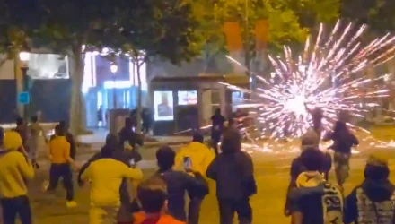 Στο μεταξύ, καταστήματα λεηλατήθηκαν, ενώ αρκετά αυτοκίνητα τυλίχθηκαν στις φλόγες, την ώρα που πυροτεχνήματα φώτισαν τον παρισινό ουρανό.