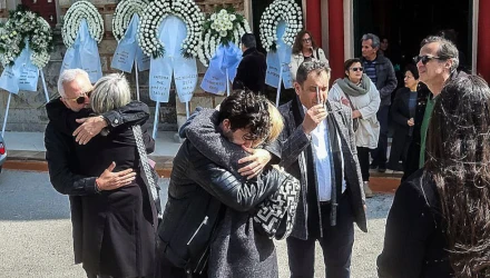 Τραγικές φιγούρες στην κηδεία της ηθοποιού, η μητέρα και η αδερφή της. Λόγια παρηγοριάς για εκείνες, ήταν αδύνατον να ειπωθούν το μεσημέρι.