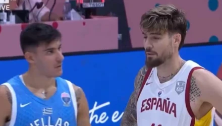 Οχι, ο άσος της Εθνικής δεν έβαλε κάποιο κρίσιμο σουτ, αλλά κατάφερε να... παίξει με το μυαλό του συμπαίκτη του στον Παναθηναϊκό Χουάντσο Ερναγκόμεθ, όταν ο τελευταίος πήγε στη γραμμή των βολών για να εκτελέσει τρεις, 13 δευτερόλεπτα πριν τη λήξη του αγώνα και με το σκορ να είναι 88-84 υπέρ της Εθνικής Ελλάδας.