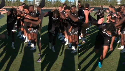 Πρώτος πέρασε το τούνελ ο μικρότερος της παρέας, Τζόναθαν Γκόμεζ, με τους Μπακαγιόκο και Κόλεϊ να περνούν με τη σειρά τους το τούνελ που διαμόρφωσαν οι υπόλοιποι ποδοσφαιριστές του Ραζβάν Λουτσέσκου.