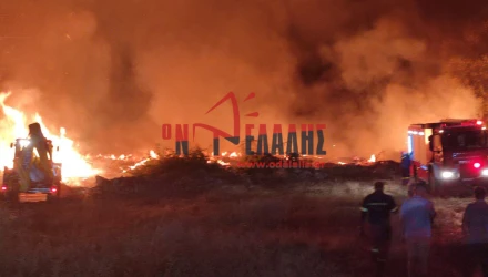 Ολονύχτια μάχη με τις φλόγες έδωσαν το βράδυ της Κυριακής (12/8) οι πυροσβεστικής δυνάμεις έξω από την Κατερίνη, στην περιοχή της Ανδρομάχης.