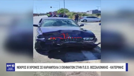 Νεκρός ανασύρθηκε 61χρονος οδηγός μετά από καραμπόλα τριών οχημάτων στην παλιά εθνική οδό Κατερίνης-Θεσσαλονίκης. Ειδικότερα, σύμφωνα με την ΕΡΤ, το τροχαίο σημειώθηκε στις 11 παρά, το πρωί στην παλαιά εθνική οδό Κατερίνης Θεσσαλονίκης, έξω από την πόλη της Κατερίνης.