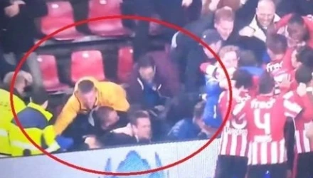 Οι οπαδοί της Αϊντχόφεν πανηγύρισαν έξαλλα το τρίτο γκολ του Ντε Γιονγκ κόντρα στη Φέγενορντ και προκάλεσαν κατάρρευση του προστατευτικού κιγκλιδώματος της εξέδρας.