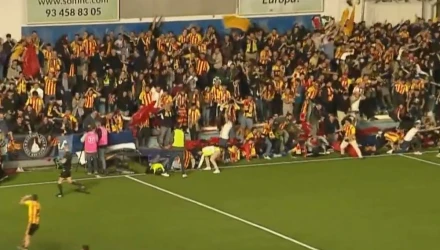 Κατέρρευσε κερκίδα στην αναμέτρηση της Εουρόπα με τη Σαντ Άντρεου για την τέταρτη κατηγορία του ισπανικού πρωταθλήματος. Τραυματίστηκε στο πόδι ένα οπαδός.