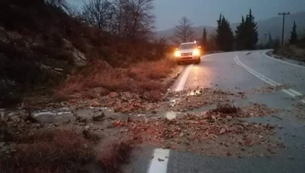 Λόγω της καταρρακτώδους βροχής, χείμαρροι παρέσυραν φερτά υλικά μέσα στο οδόστρωμα με αποτέλεσμα να κλείσει ο δρόμος σε αρκετά σημεία.