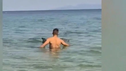 Καβάλα: Δελφίνι κολυμπά στα ρηχά παραλίας στη Ν. Πέραμο