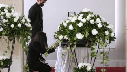 Κηδεία Τσοχατζόπουλου: Γονατιστή δίπλα στο φέρετρο η Βίκυ Σταμάτη