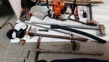 Στην κατοχή τους βρέθηκαν ραβδοσκοπικό μηχάνημα για την ανίχνευση μετάλλων, ένα τρυπάνι, σκαπτικά και άλλα εργαλεία (φτυάρια, τσάπα, κόφτης κ.α.), γάντια και ένας φορητός πομποδέκτης τα οποία και κατασχέθηκαν. Κατασχέθηκαν επίσης και δυο οχήματα τα οποία τα χρησιμοποιούσαν οι δράστες για τις κινήσεις τους.