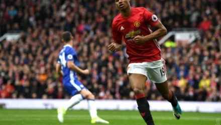 Οι «κόκκινοι διάβολοι» μπήκαν από την αρχή πιο αποφασισμένοι για να πάρουν το παιχνίδι. Μόλις στο 7ο λεπτό της αναμέτρησης ευτύχησαν να προηγηθούν με τον Ράσφορντ που ξεκίνησε στο αρχικό σχήμα αντί του Ζλάταν Ιμπραΐμοβιτς. Μάλλον η έμπνευση του Μουρίνιο ωγήκε με το νεαρό επιθετικό. Η Τσέλσι λόγω του τραυματισμού του Κουρτουά είχε κάτω από τα δοκάρια της τον Μπέγκοβιτς. Στην επανάληψη λίγα μετά την έναρξη ο Ερέρα που συνολικά είχε μια πολύ καλή παρουσία έπιασε το σουτ, η μπάλα κόντραρε στον Ζούμα και ξεγέλασε τον τερματοφύλακα της Τσέλσι.