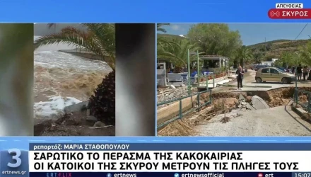 Πρόσθεσε ότι για τις δυο γέφυρες που κατέρρευσαν στα νοτιά της Σκύρου γίνονται προσπάθειες για παρακαμπτηρίους, ώστε να εξυπηρετηθεί ο ναυτικός σταθμός, ενώ τις επόμενες 10 μέρες θα αποκατασταθούν και οι γέφυρες που κατέρρευσαν στις Αχερούνες. Πάντως, ο κ. Μαυρίκος διαβεβαίωσε τους τουρίστες που πρόκειται να επισκεφτούν τη Σκύρο ότι μπορούν να κινηθούν άνετα σε όλο το οδικό δίκτυο και πως κανένα κατάλυμα δεν έχει πάθει ζημιά.