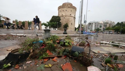 Εργασίες καθαριότητας πραγματοποιούνται από το πρωί στον Λευκό Πύργο, προκειμένου να αποκατασταθούν οι ζημιές που προκλήθηκαν από τη χθεσινή θεομηνία.