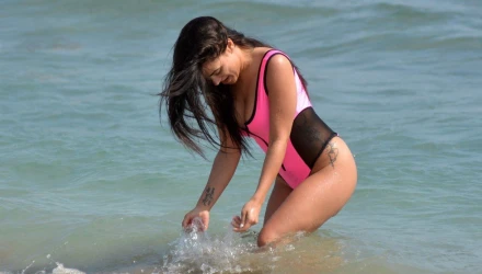 Στις φωτογραφίες που ποστάρει, σε άλλες ποζάρει με το μαγιό της και φόντο το απέραντο γαλάζιο ενώ σε άλλες το φόρεμά της, περπατά κάτω από τη σκιά των φοινίκων και ανεβάζει τη θερμοκρασία στα ύψη.