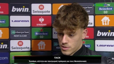 Ο Γιάννης Κωνσταντέλιας ήταν από τους παίκτες του ΠΑΟΚ που μίλησαν στην COSMOTE TV μετά το φινάλε της αναμέτρησης με την Ελσίνκι. Όπως είπε συγκεκριμένα: «Εγώ απλά μπαίνω μέσα και το χαίρομαι, δεν σκέφτομαι ούτε ετικέτες, ούτε τίποτα.