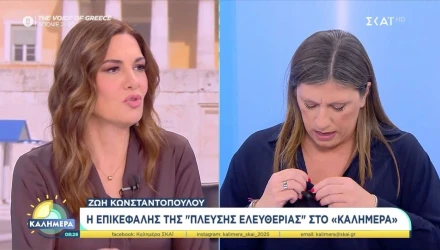Μια άκρως επεισοδιακή εμφάνιση είχε το πρωί του Σαββάτου (18/10) η Ζωή Κωνσταντοπούλου, δίνοντας συνέντευξη μόλις... δύο λεπτών και πενήντα έξι δευτερολέπτων στον ΣΚΑΪ.