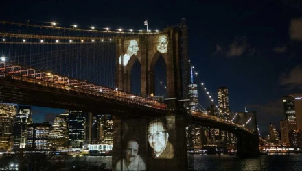 Ρίγη συγκίνησης για εκείνους που χάθηκαν από τον κορονοϊό. Η εμβληματική γέφυρα του Μπρούκλιν, στη Νέα Υόρκη, πήρε τις μορφές ανθρώπων της πόλης που νικήθηκαν από την covid-1