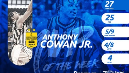 27 βαθμούς συγκέντρωσε ο Άντονι Κάουαν του Άρη, όσους και ο Λιβιό Ζαν – Σαρλ του Ολυμπιακού, κερδίζοντας αμφότεροι το βραβείο του Stoiximan MVP of the Week.