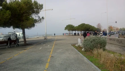 Αρκετός κόσμος υπήρχε πριν από λίγη ώρα στη Νέα Παραλία της Θεσσαλονίκης παρά την ιδιαιτερότητα της ημέρας.