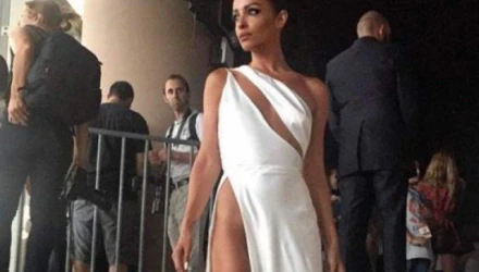 Όχι μόνο γιατί άφηνε καλυμμένα τα απολύτως απαραίτητα! Όχι μόνο γιατί ένα παρόμοιο φόρεμα φόρεσε πριν μερικές εβδομάδες η Μπέλα Χαντίν στις Κάννες (σε κόκκινο βέβαια)! Αλλά, κυρίως, γιατί αποτελεί πιστή αντιγραφή ενός άλλου φορέματος, όπως αποκάλυψε ο γνωστός σχεδιαστής Βασίλειος Κωστέτσος.