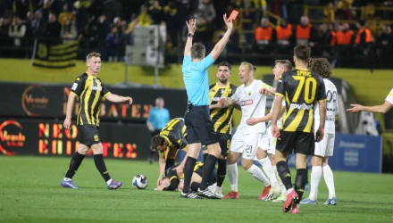 Ο παίκτης της ΑΕΚ δεν βρίσκει τον αντίπαλο του με τάπες αλλά με το κουντουπιέ του παπουτσιού του, είναι εμφανές στα ριπλέι, ενώ στην κλίμακα έντασης στην αξιολόγηση που δίνει η ΟΥΕΦΑ αυτό το μαρκάρισμα δεν ξεπερνάει το 6, ενώ και με 7 που είναι το όριο θα ήταν πάλι κίτρινη. Ξεκάθαρο λάθος την απόφαση αυτή τη θεώρησε και ο VAR, με αποτέλεσμα να τον καλέσει για επανεξέταση. Η επιμονή στην ίδια απόφαση συνιστά διπλό λάθος για τον διαιτητή.