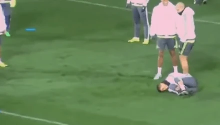 Σε προπόνηση της Ρεάλ Μαδρίτης και κατά την διάρκεια του «κορόιδου» ο Κριστιάνο Ρονάλντο έκανε το λάθος να σπρώξει τον Πέπε με τον ώμο του. Τι το ήθελες ρε Κριστιάνο αγόρι μου; Ορίστε πάρε και το τάκλιν σου!